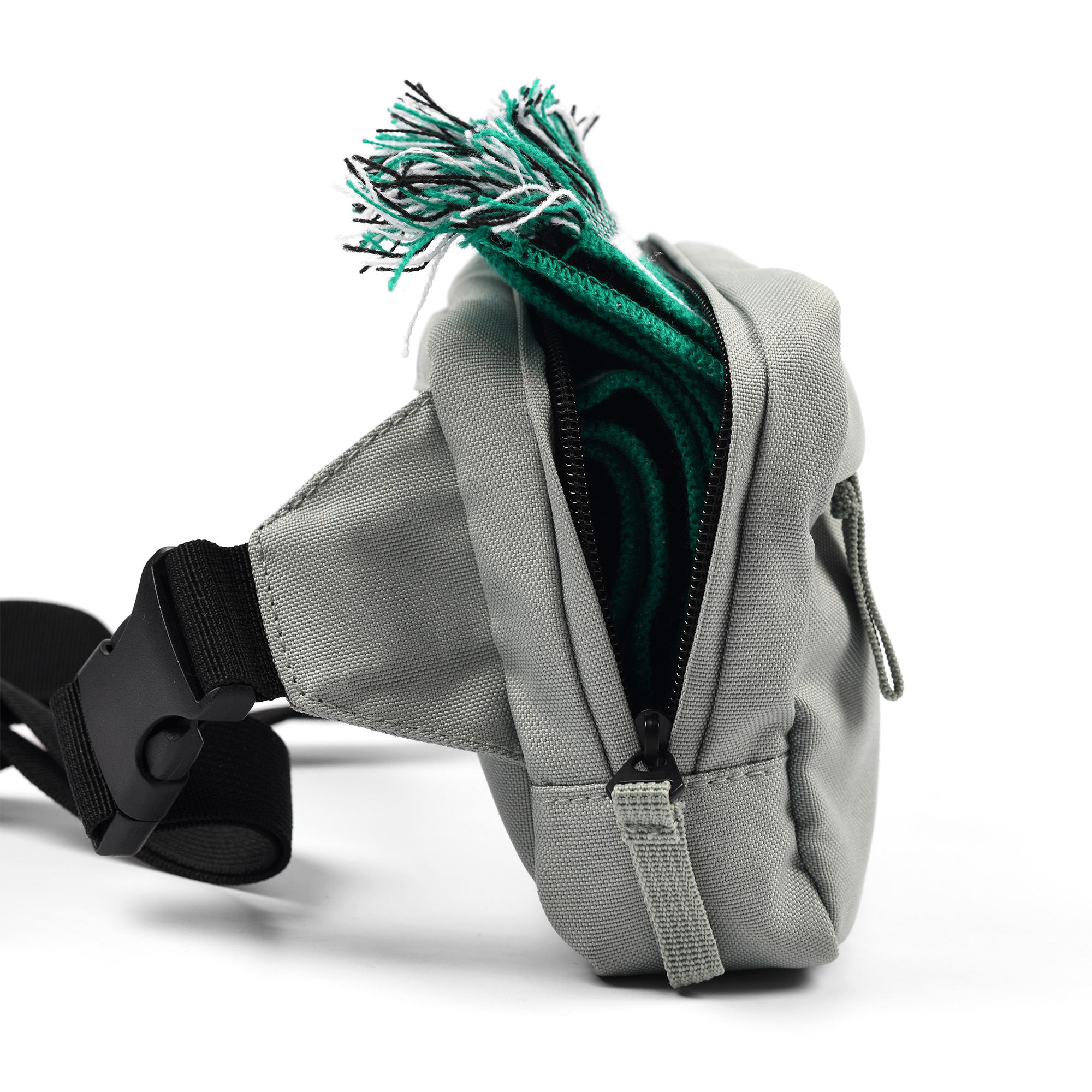Banane Stéphanois vert d’eau rendant hommage aux 7 collines de Saint-Etienne et à ses deux célèbres crassiers.