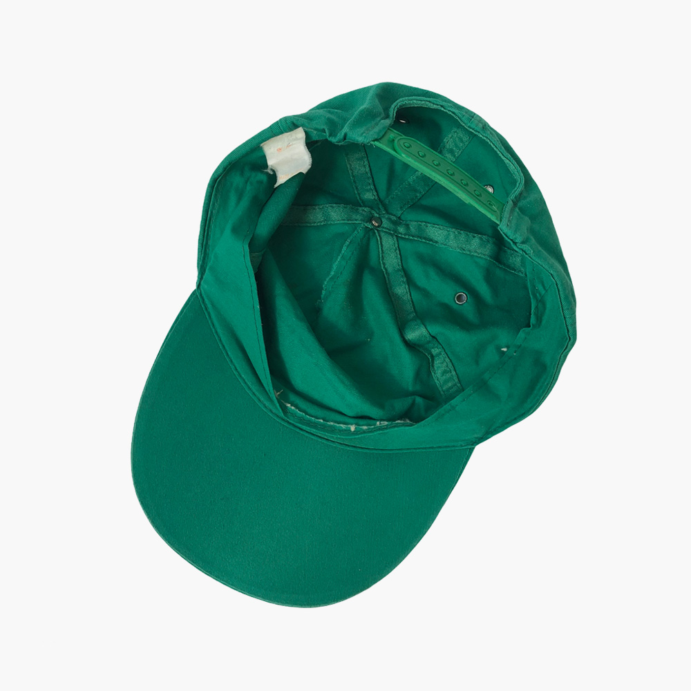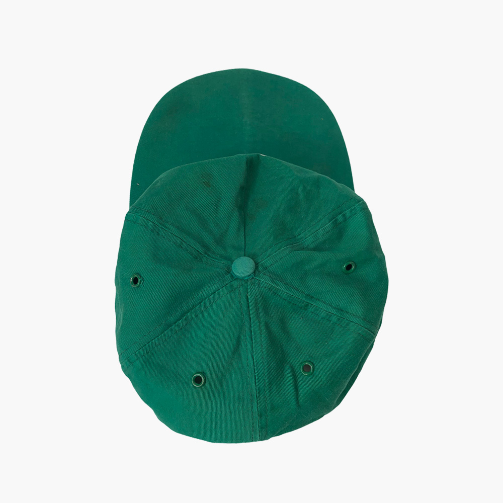 – Cette casquette porte le poids des années. Le flocage est légèrement vieilli, la visière légèrement pliée et quelques tâches sont visibles.