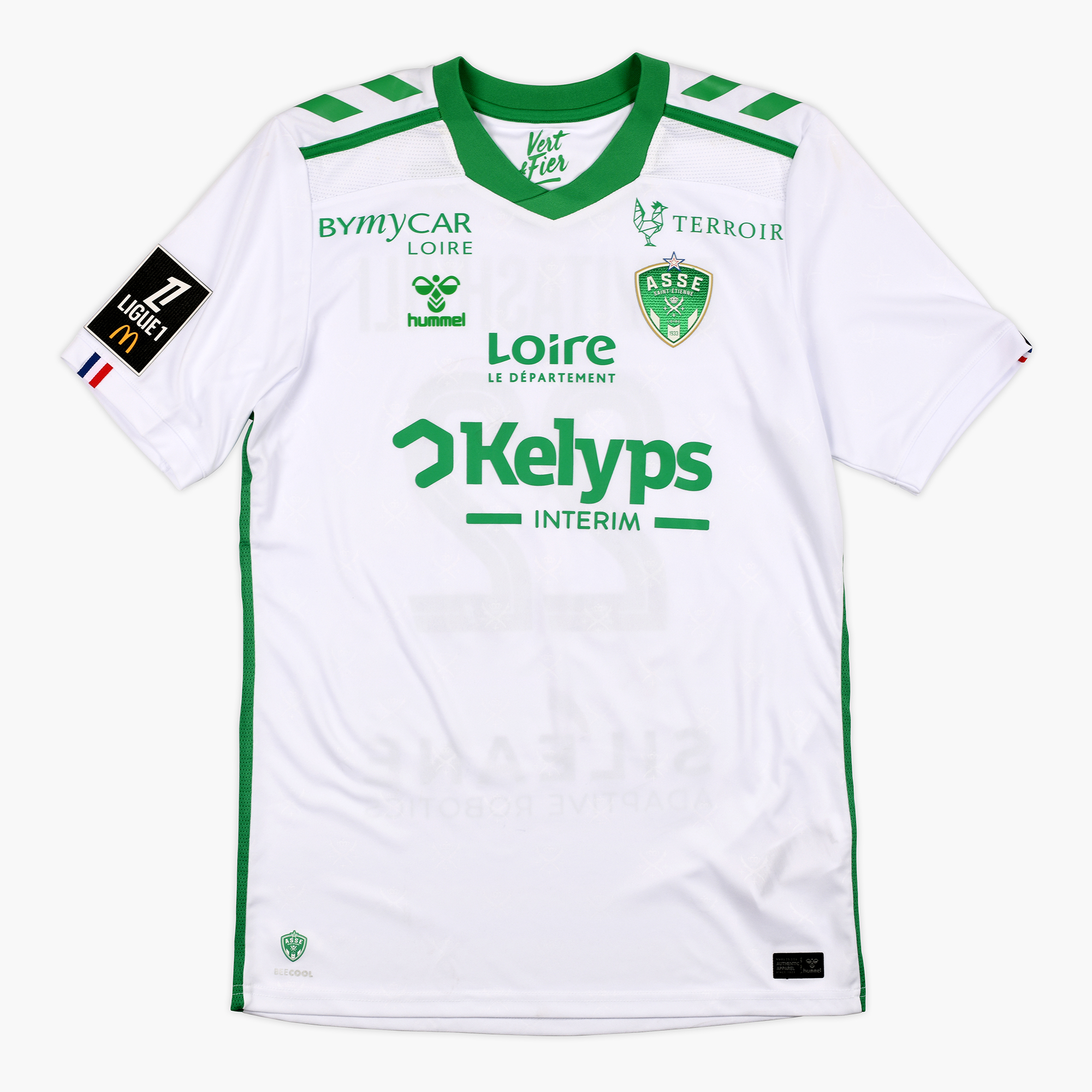 Maillot ASSE Davitashvili de la saison 2024/2025 porté par ou préparé pour le joueur lors d’un des matchs extérieur de la première partie de saison.