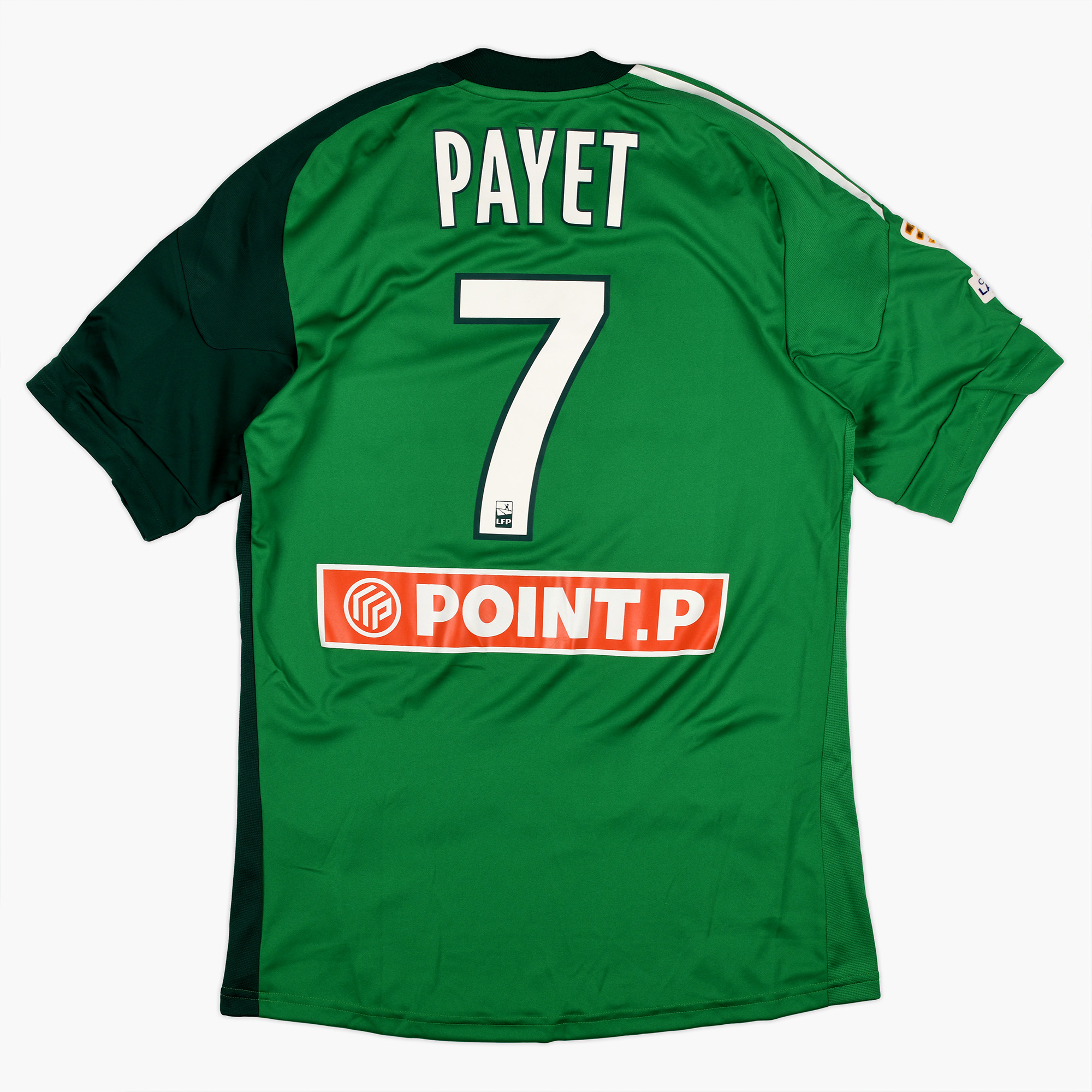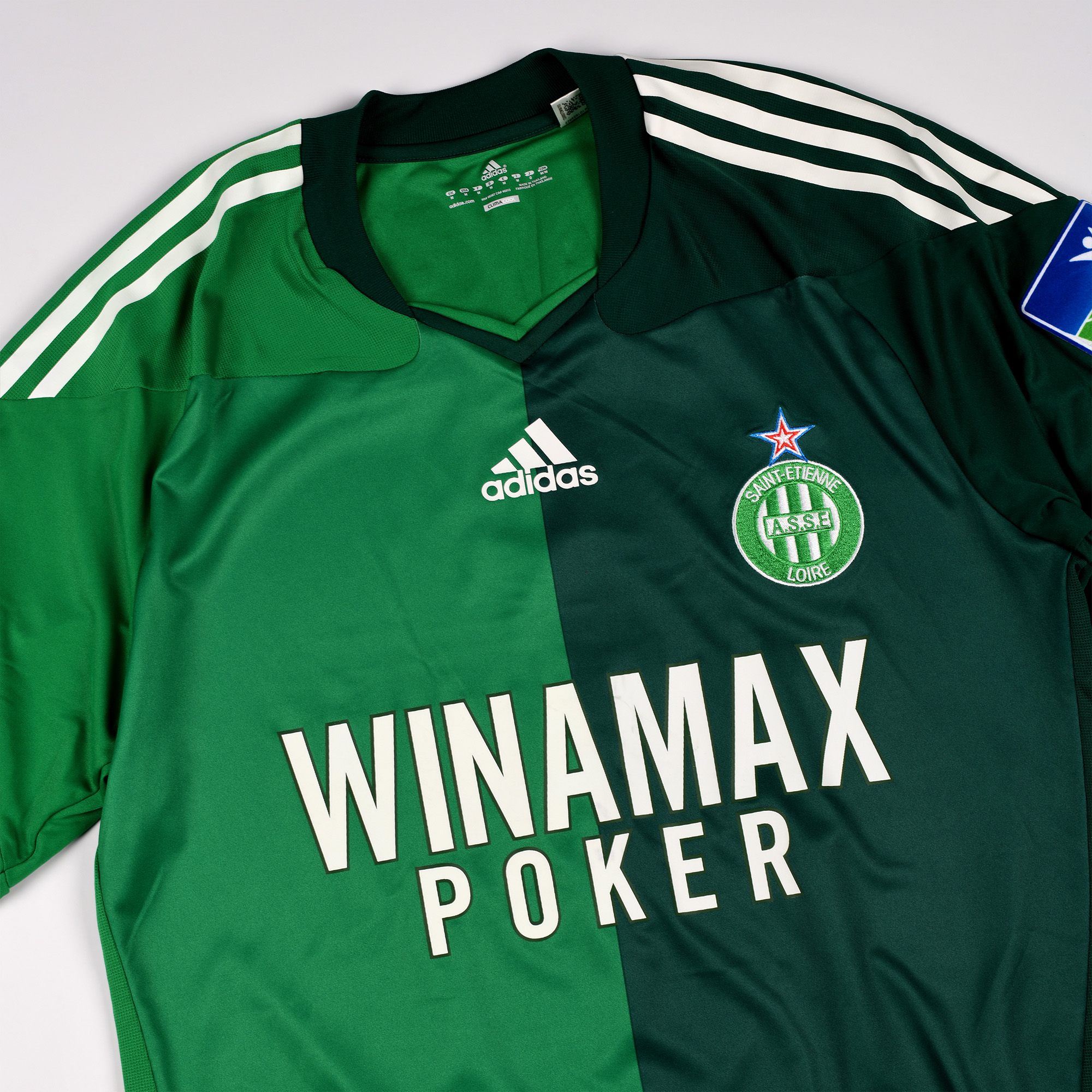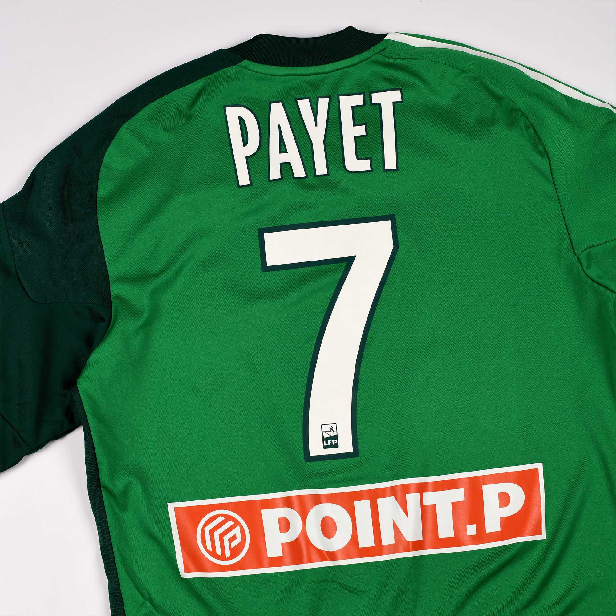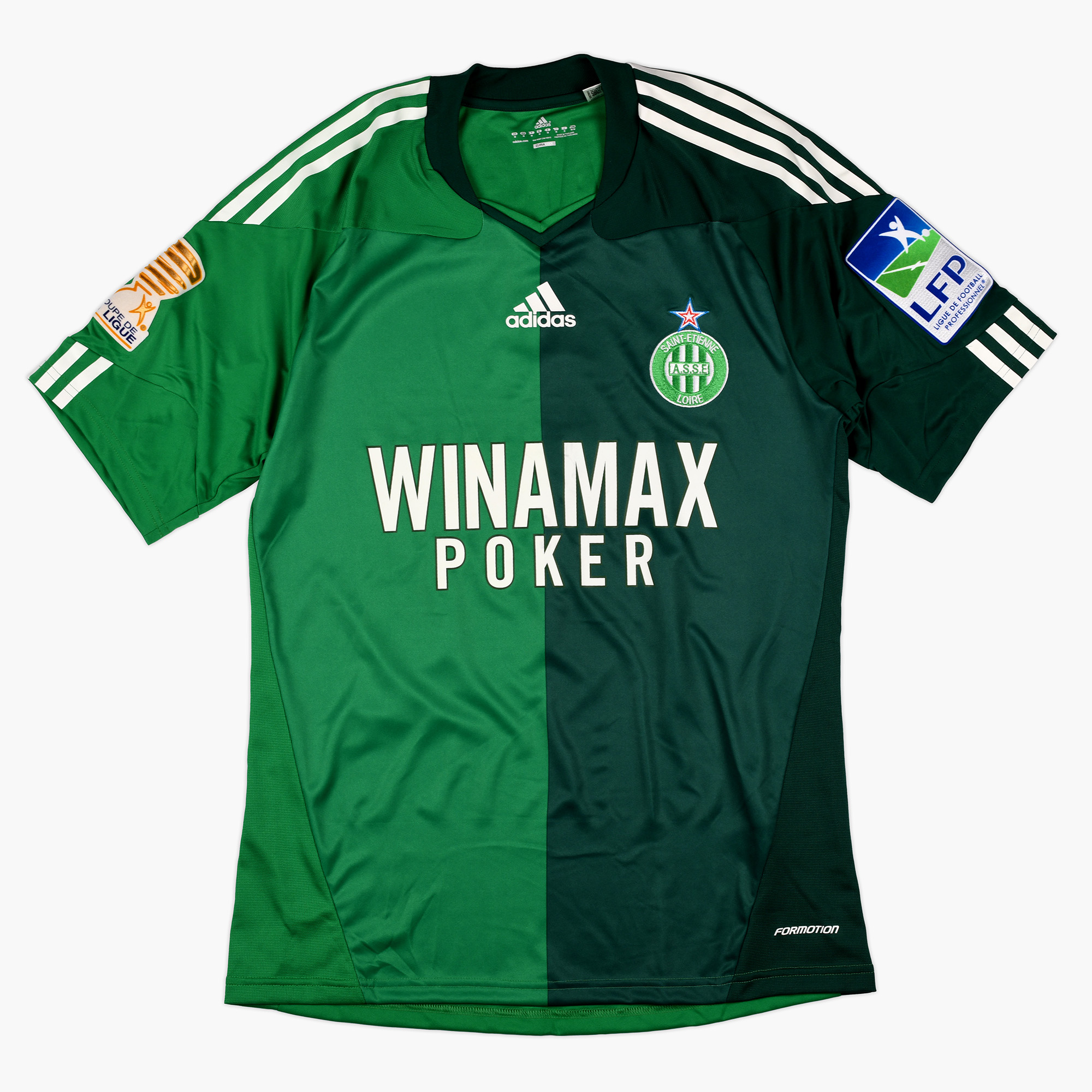 Ce maillot ASSE Dimitri Payet est un maillot préparé pour l’un des matchs de la Coupe de la Ligue 2011. C’est un maillot Adidas Formotion avec les patchs LFP et Coupe de la Ligue. Malheureusement, Dimitri Payet n’aura participé à aucun des trois matchs de cette édition.