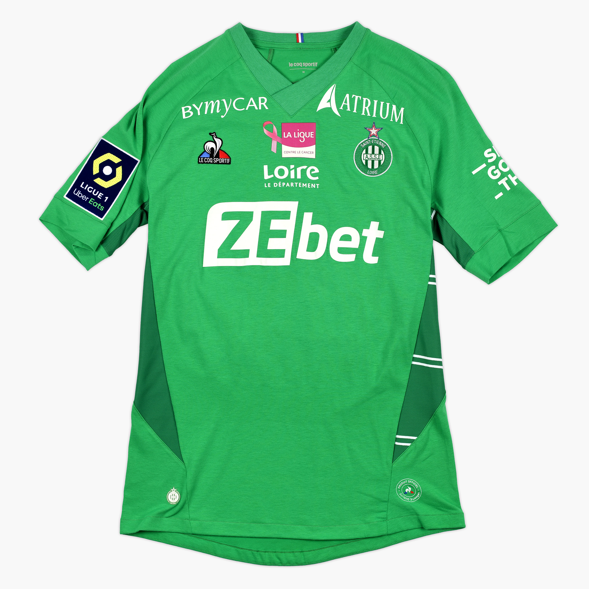 Maillot ASSE Octobre Rose porté par ou préparé pour Romain Hamouma lors du derby contre l’OL de la saison 2021-2022.