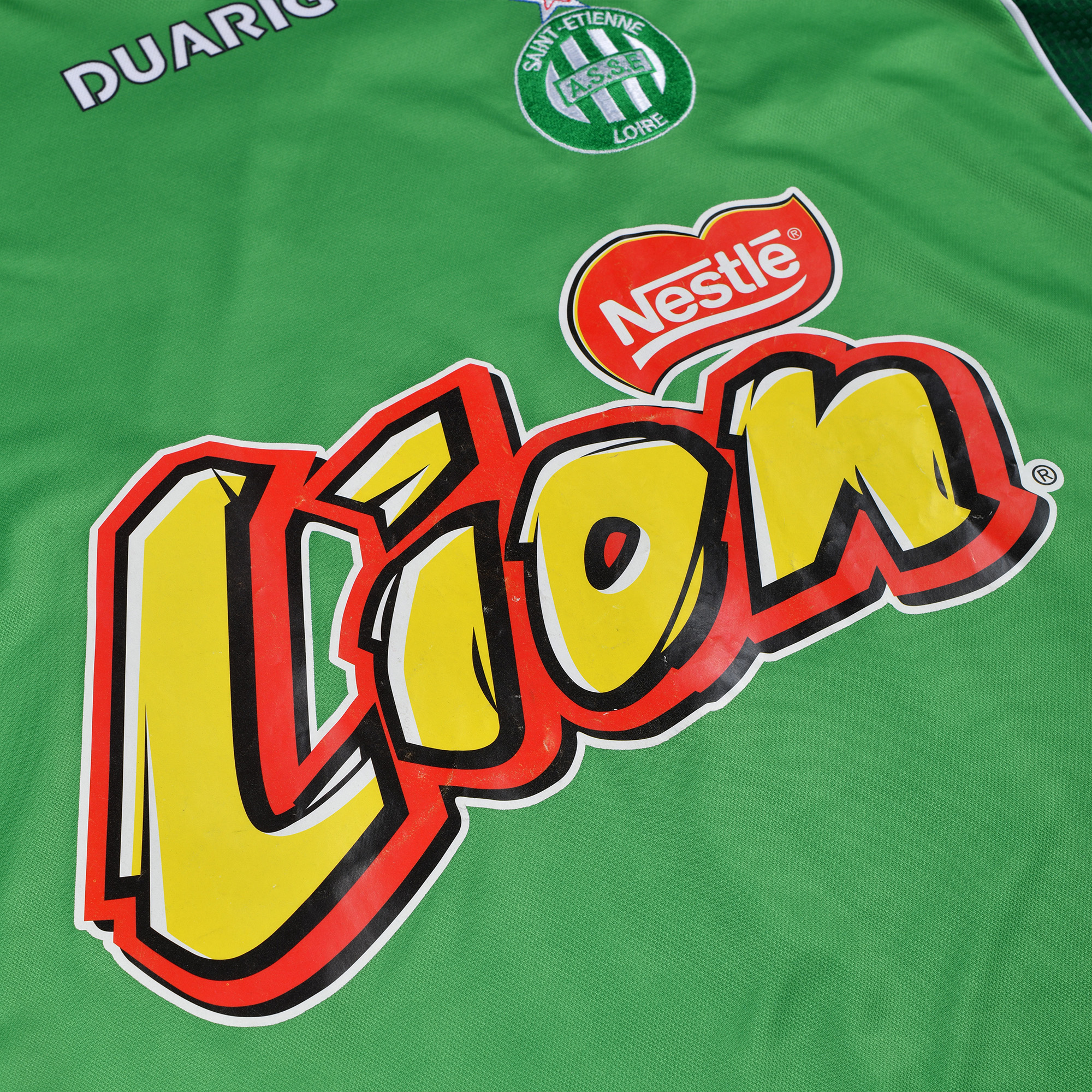 Ce maillot, en plus d’être une très belle pièce de collection du célèbre capitaine des années 2000, est plutôt original car il porte le sponsor Lion. Sponsor le plus souvent présent sur les maillots des équipes qui jouaient à l’extérieur cette année-là. L’équipe qui recevait portait alors Bouygues Télécom.