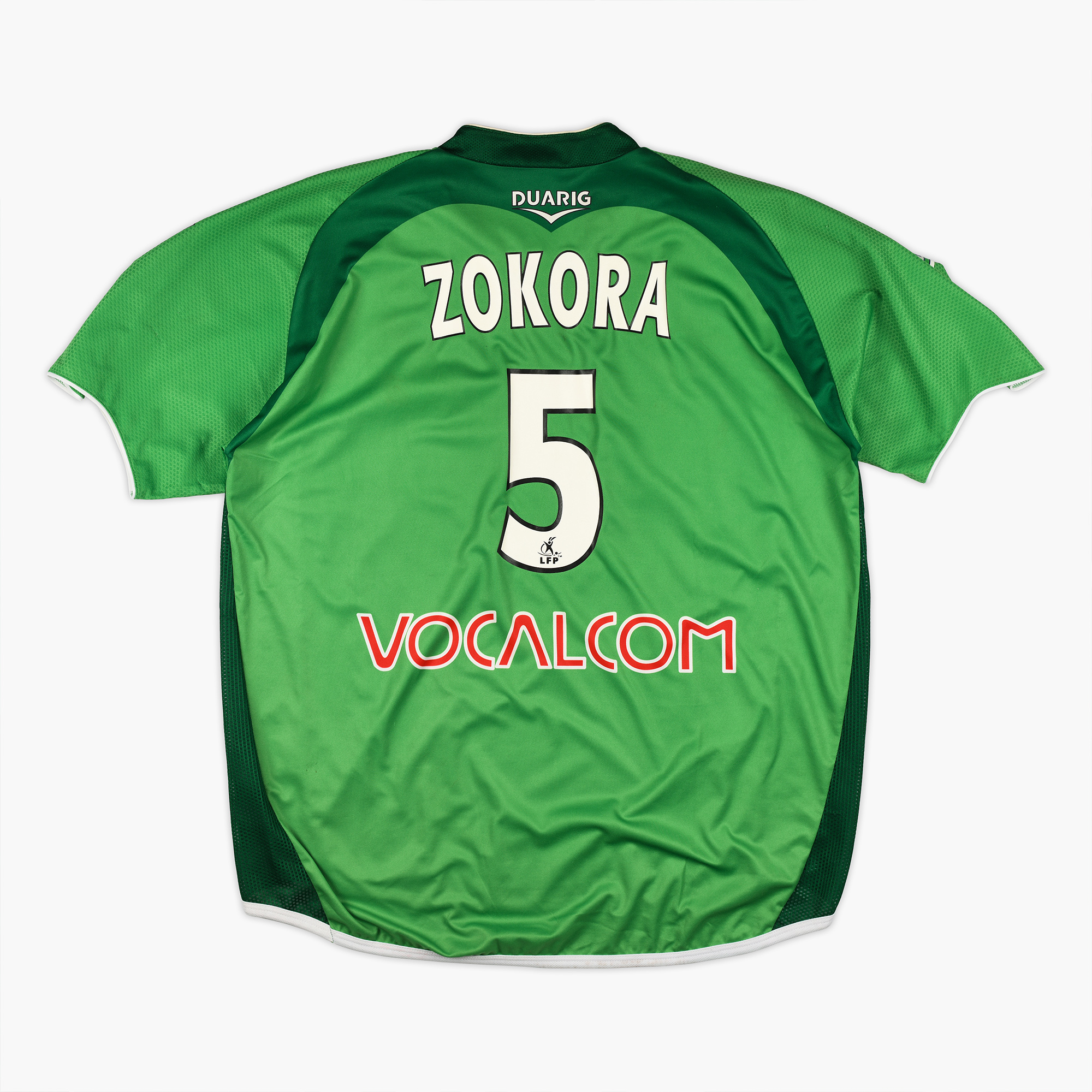 Ce maillot ASSE Zokora a été porté ou simplement préparé pour Didier Zokora lors de la saison 2004-2005. Il est le maillot du retour des Verts en première division et d’une excellente saison où le Maestro ivoirien régnait en maître au milieu de terrain.