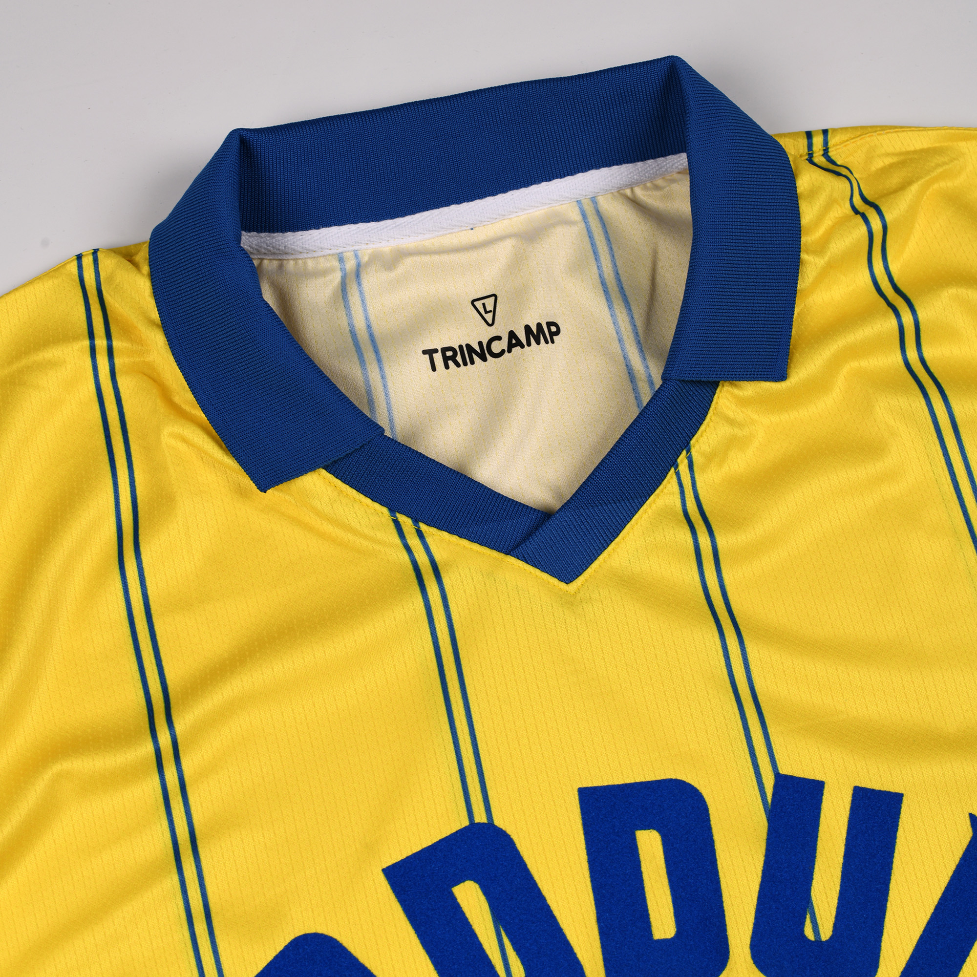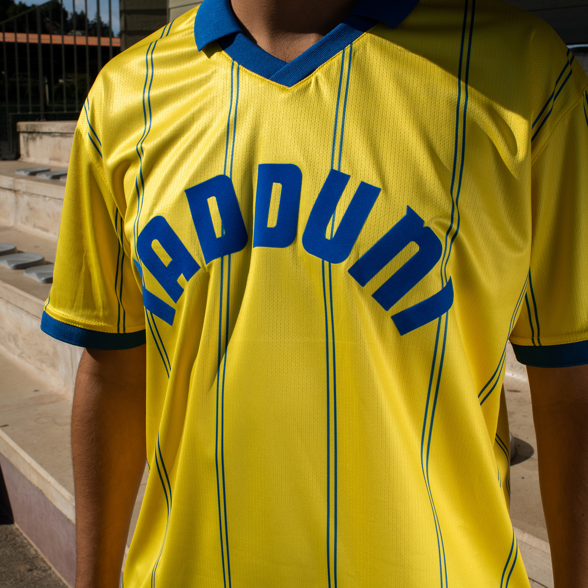 Un maillot inspiré de ceux que portaient les Jaune et Bleu durant les années 70/80, lorsque l’enseigne de vêtements Tadduni soulageait les porte-monnaies des Stéphanois et s’affichait fièrement sur les torses des Stratiens.