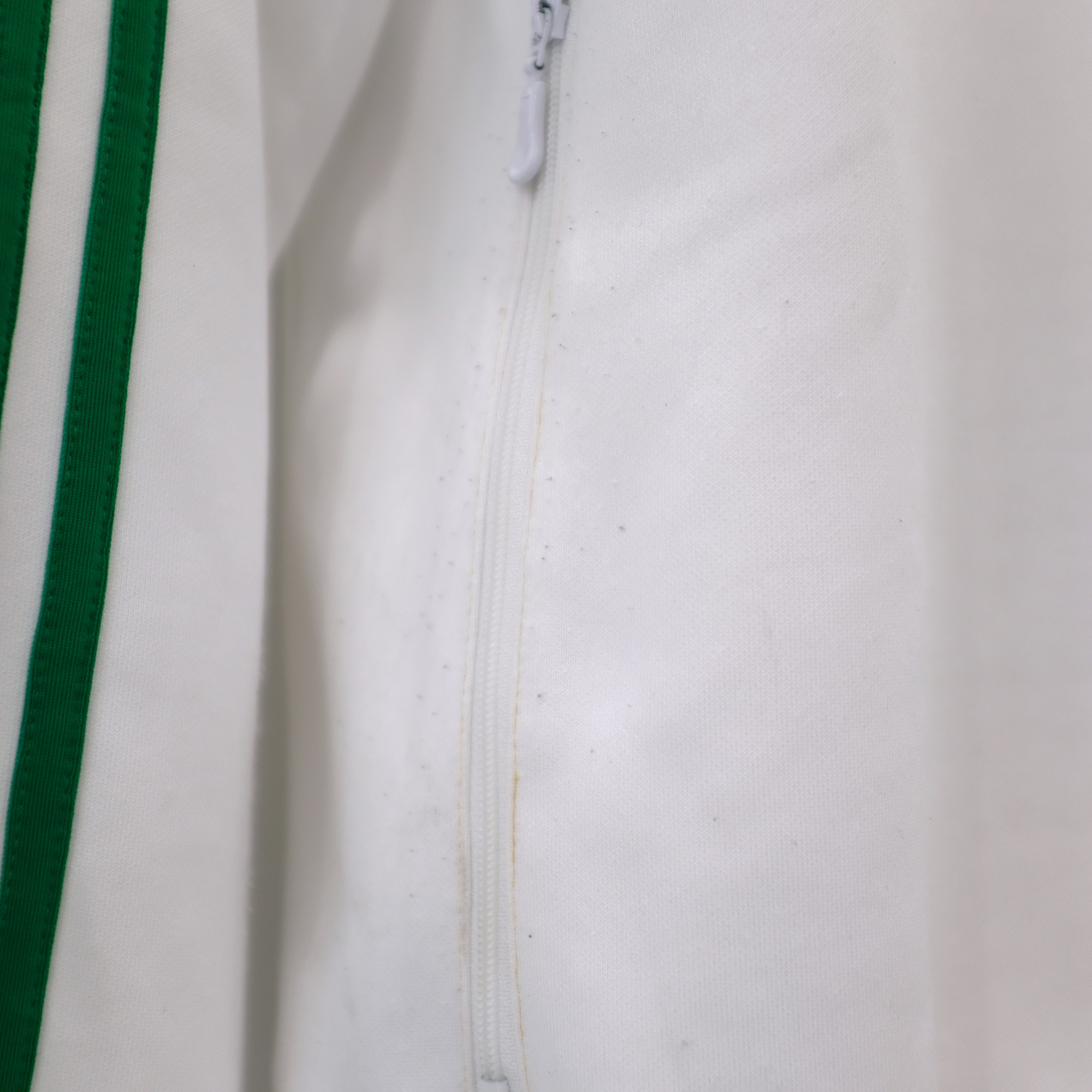Les vestes ASSE adidas blanches ont été commercialisées dans les années 2000/2010, lorsqu’Adidas était devenu l’équipementier des Verts. D’inspirations rétro, ces vestes classiques n’ont pas perdu de leur charme avec les années.