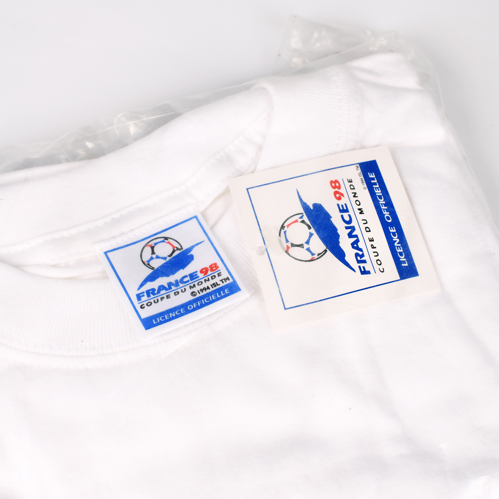 Ce t-shirt Footix France 98 noir a été commercialisé à l’occasion de la Coupe du monde 1998 en France. Neufs d’époques, ces t-shirts n’ont jamais été déballées et sont restées toutes ces années sagement dans un placard.